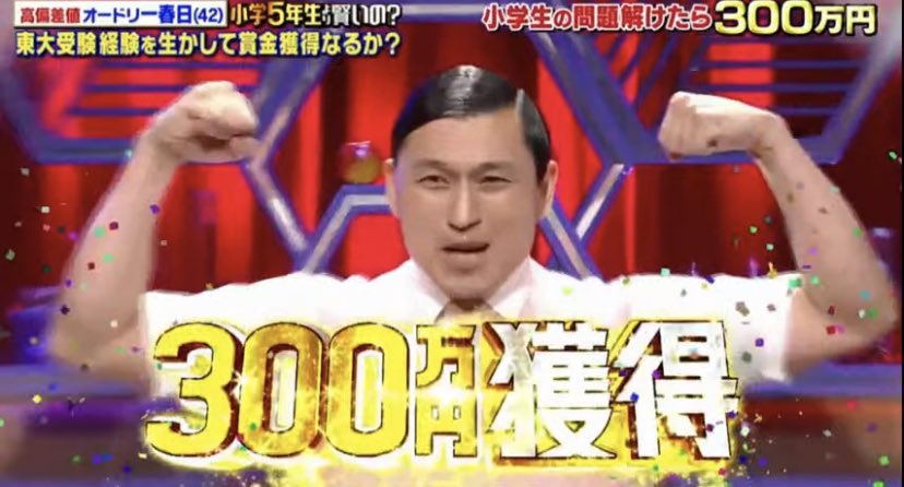 【動画】オードリー春日が300万円獲得!小5クイズの動画は?